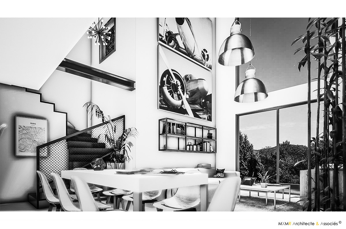 Création d'une villa contemporaine en structure acier avec toit terrasse végétalisé